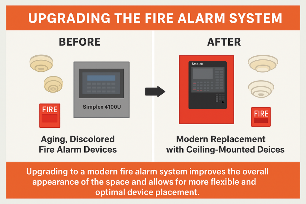 | **Upgrade fire alarm system** | Update to a modern fire alarm platform with improved coverage, smarter detection, and better monitoring | Better life safety, fewer nuisance alarms, more reliable diagnostics, and easier future expansion |