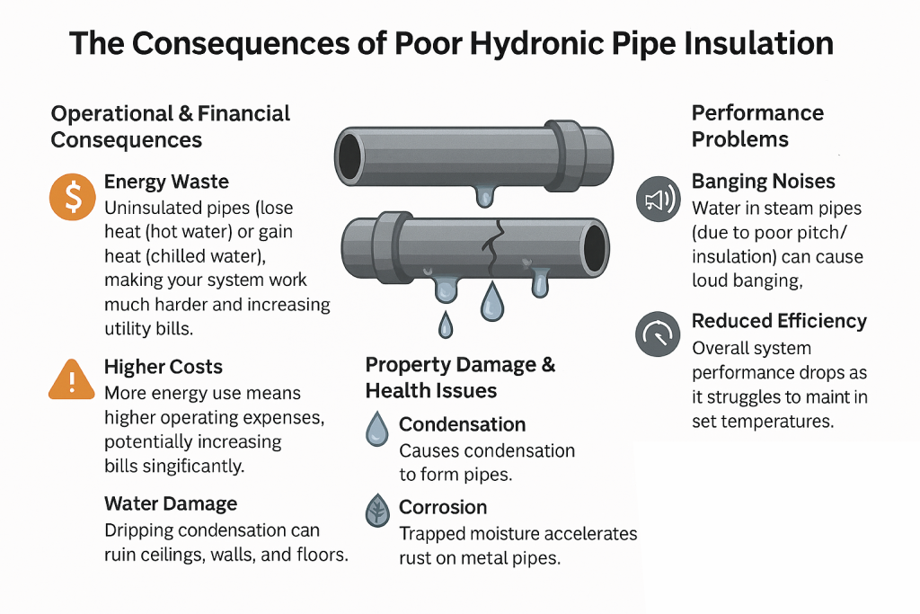 From site observations, we believe that 20% of each institutions’ hydronic piping insulation is damaged. Damaged or missing piping leads to energy losses, reduced efficiency, and higher energy costs due to the system overcompensating to maintain the set temperature. Below is a summary table of operational costs due to insufficient insulation.